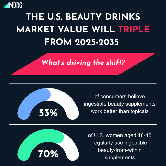 Consumers are reaching for ready-to-drink beauty beverages as a natural part of their daily wellness routines, and the market is following. Multiple industry forecasts project that the U.S. beauty drinks category will nearly triple in value over the next decade.